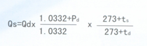 Qs标准状态风量(m3/mln)Qn基准状态风量(m3/min)。