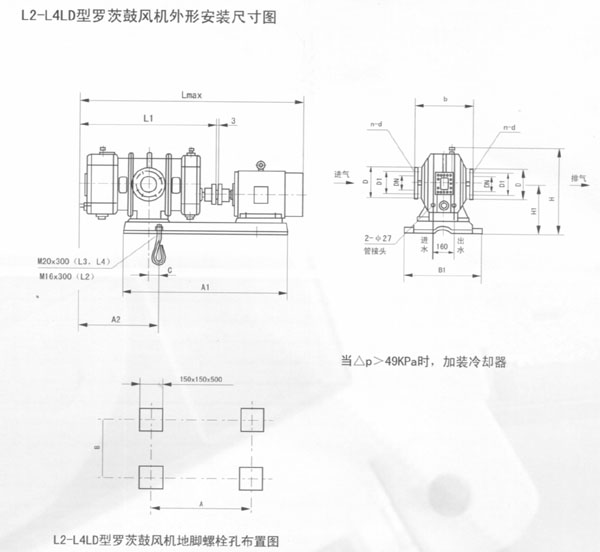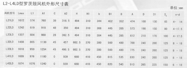 L系列罗茨鼓风机的流量范围为1.46立方米/分--711立方米/分,升压范围9.8Kpa一68.6Kpa。
