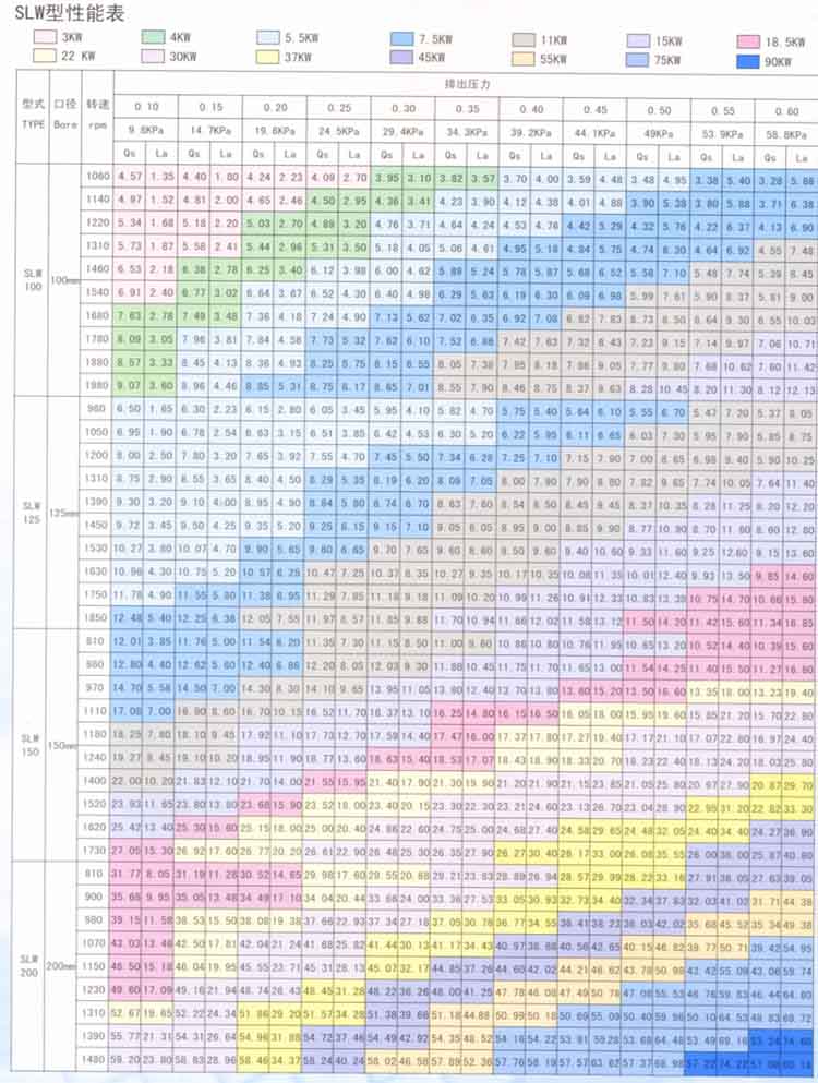 SLW型性能表