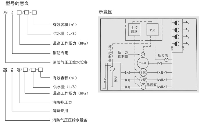 XQZ(XOG XQB)系统气压给水设备主要用于高层建筑作为消防专用设备或消防与生活共用给水设备。