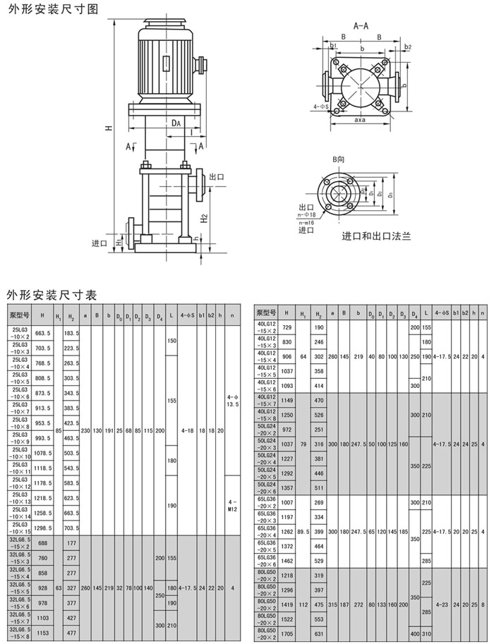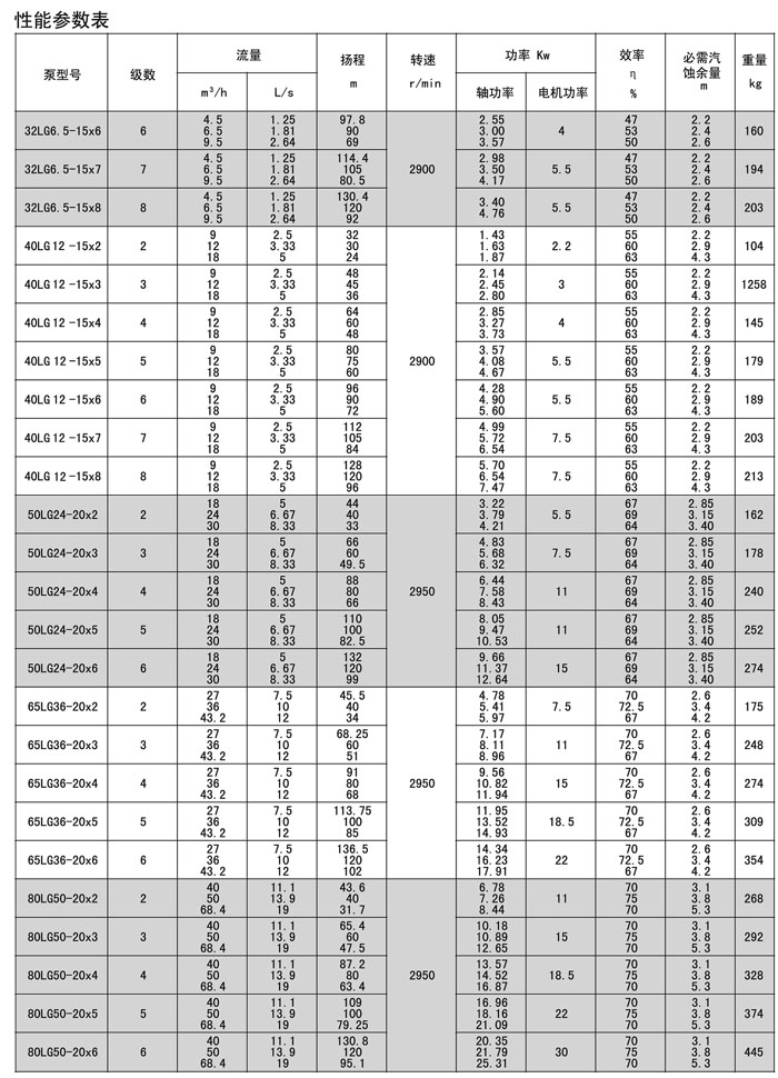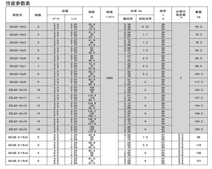 型号的意义如:25LG3--10x2 25--泵进口直径 LG--高层建筑给水泵 3--流量(m3/h) 10--单级扬程(m) 2--级数
